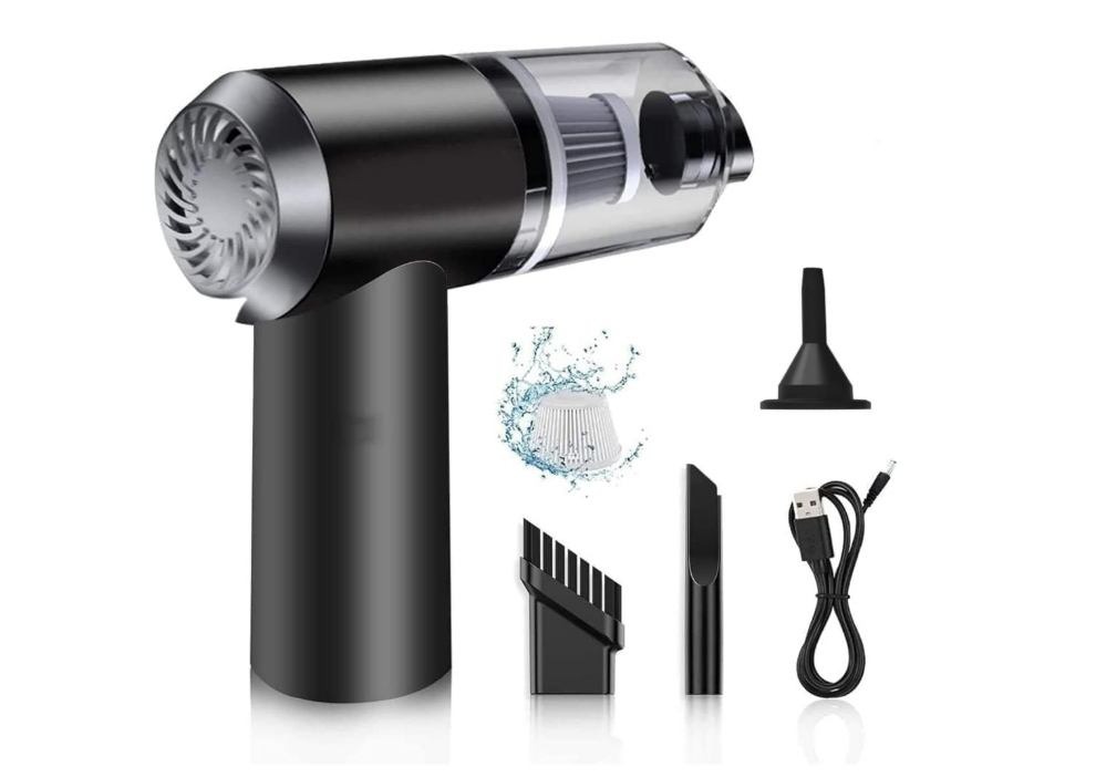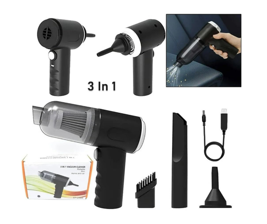 3-in-1 Cordless Car Vacuum Cleaner with Blower & 3 Attachments | Portable Handheld Vacuum for Wet & Dry Cleaning | Rechargeable Mini Vacuum for Home, Office, Sofa, Travel & Keyboard (1 Pack)