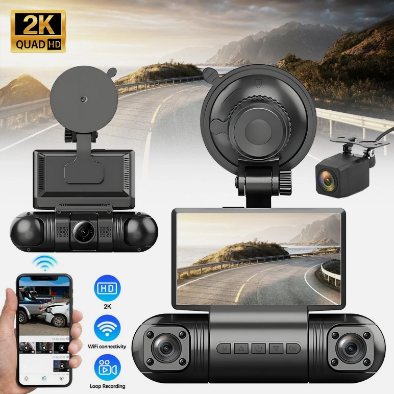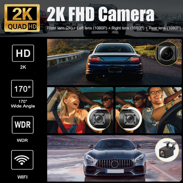 WELLEXSA 4 Lens Dash Cam 2K+1080P HD Car Camera WiFi Video Recorder Camera G-Sensor